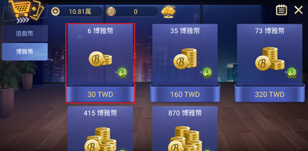 3.選擇欲購買之道具/商品 (此為購買博雅幣示意圖)