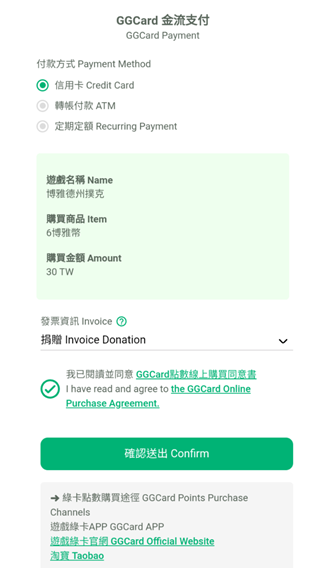 5.請閱讀並勾選同意GGCard點數線上購買同意書
