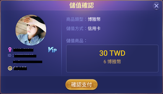 1.請務必確認登入之遊戲帳號正確,付款完成後恕無法更換帳號或退款